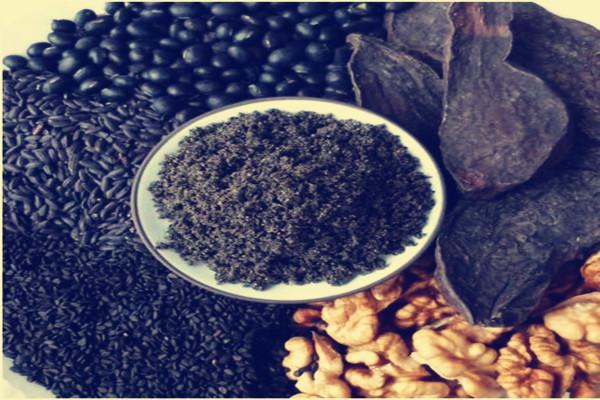 材料:黑芝麻、何首乌、梧桐子、熟地等各适量。