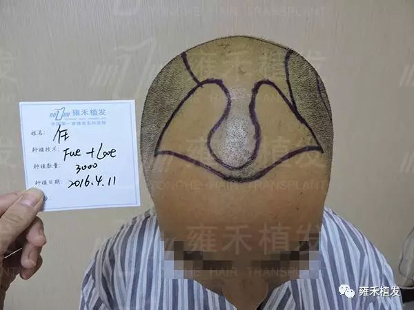 2016年4月11日,太原雍禾为任先生种植3127单位,本来术前预估种植3000单位,结果多取种127单位。对了,这是采用组合技术种植,既有FUE-APL2.0,又有LATTICE,前者重点种植两额角的空白后退区,后者种植头顶的稀疏区,就种植量来说,E比L略微多些。整个头顶秃啊,仅仅种植3127单位,这够吗?我们回答你的是,雍禾注重“节约型植发”,用尽可能少的毛囊量布局尽可能多的脱发面,而这背后则是毛囊的高成活率。
