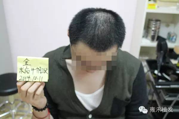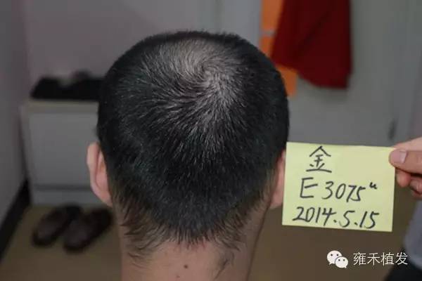 (植发手术前,即使金先生站直了不低头,都是看到头顶一片白,你就可以推算他的脱发有多严重了!)