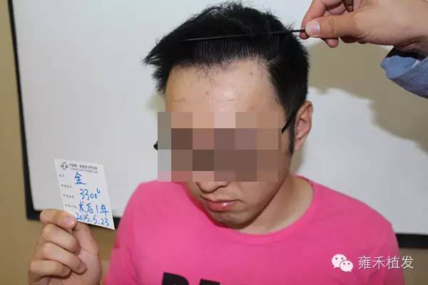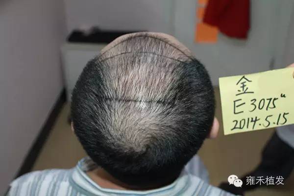 有发友可能问:这么大的脱发面,种植3300单位管用吗?大家可以看文章后面的图片,术后1年时头顶的“白皮书”不翼而飞,取而代之的是“黑色树”,进而让金先生有了帅气阳光的形象。我们不能不感叹,雍禾的大面积植发“了得啊了得”!不止金先生,就是其他大面积脱发者,都能在雍禾植发享受到“金牌技术”,让邋遢形象“金蝉脱壳”!