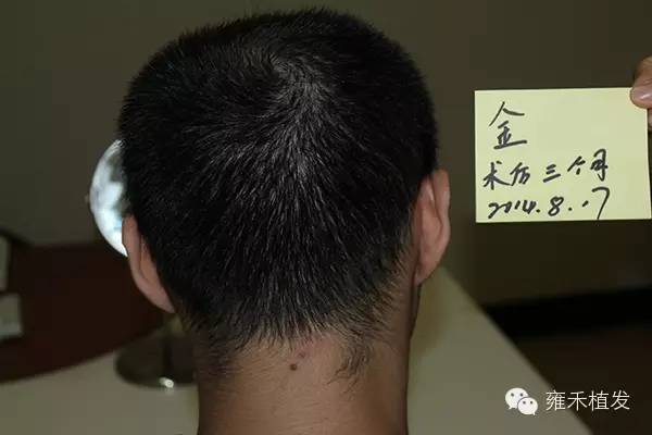 (术后1年的后枕,依然是挺好,挺好。就像金先生的姓一样,金放到哪儿都是闪闪发光的,无论你是左看右看前看后看。雍禾植发金子一般的贴心服务,金子一般的植发效果,我们在中国植发界的星空中闪闪发光!!!)