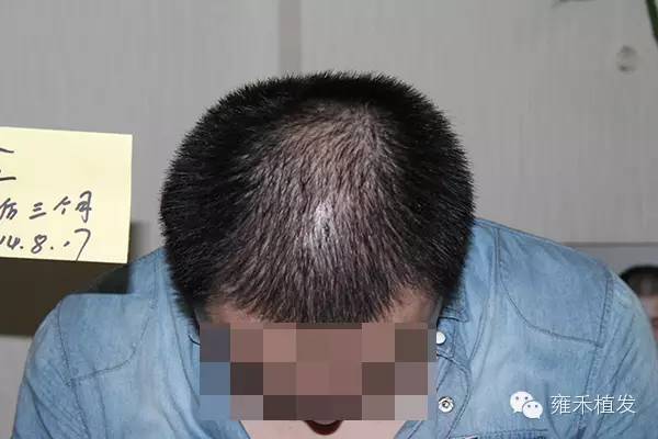 (术后3月,此时刚刚结束脱落期,比术前略有改观了,但就整个植发效果来说又是起步阶段。)