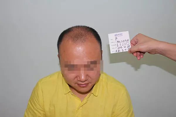 (严先生术前正面照,看着是大秃顶吧,但是,只是正面看的话还不是最严重。)