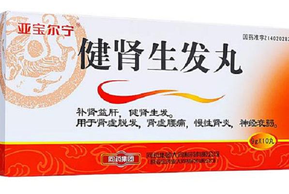 健肾生发丸是一种中成药,该药的药物成分中的溶质酶刺激素能有效地激活毛囊产生溶质酶,溶解阻塞在毛囊供血血管里的油脂,打通供血通道,使毛囊恢复生发功能,促进毛球刺激因子使毛根分化,加速头发生长,对肾虚引起的脱发的确有很好的治疗效果。
