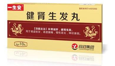 健肾生发丸由制何首乌、熟地黄、枸杞子、黄精、五味子、大枣、女贞子(酒制)、菟丝子、苣胜子、桑椹当归、柏子仁、山药、山茱萸(酒蒸)、茯苓、泽泻(盐水炒)、桑叶、地黄、牡丹皮、黄连、黄柏、杜仲(盐水炒)、牛膝、续断、木瓜、羌活、川芎、白芍甘草等多种中药成分制成。用于脂溢性脱发、斑秃、全秃、普秃枯槁;神经性脱发、产后脱发、头发持续弥散性脱落、头发稀疏、药物化疗性脱发;少白头、须发早白、头发干枯分叉、枯黄断裂。