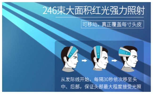 5、低能量红光没有什么热效应,所以自己感受不到,头两次使用较好对着有一定弧度的镜子观察红光是否很好的照射到了头皮。