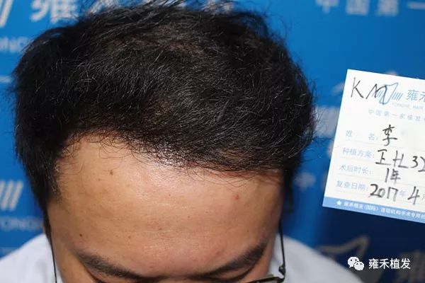 2016年4月30日,昆明雍禾为李先生种植3207单位,大体上是一半E,一半L,E略微比L多一点点,就毛囊单位所含头发根数来说,单根头发的毛囊单位1607,多根头发的毛囊单位1600。现在好多发友常问种了多少根头发,如果按一个毛囊单位平均含2根头发计算,李先生就是种植了6000余根头发。种头发,是俗称;种毛囊,是规范称呼。