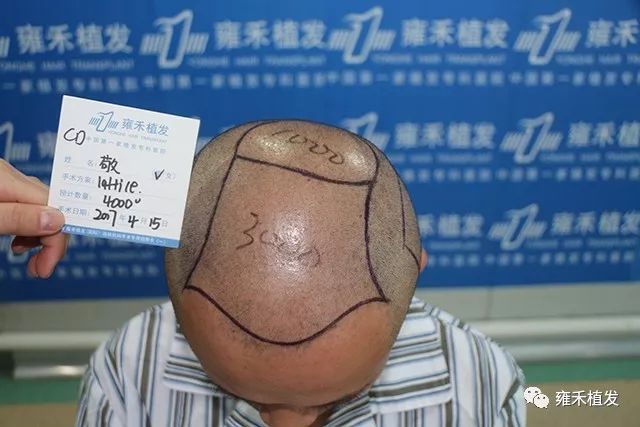 2017年4月15日,成都雍禾用LATTICE为敬先生种植3608单位,含单根头发的毛囊单位1236,含多根头发的毛囊单位2372,术前预估种植4000单位,结果少取种392单位,一般发友实际种植量大于预计种植量,敬先生却是反之。种植区涵盖整个头顶,3608单位真的不算多,好在雍禾的毛囊量成活率高,并且艺术植发,这才显示出“节约植发”。