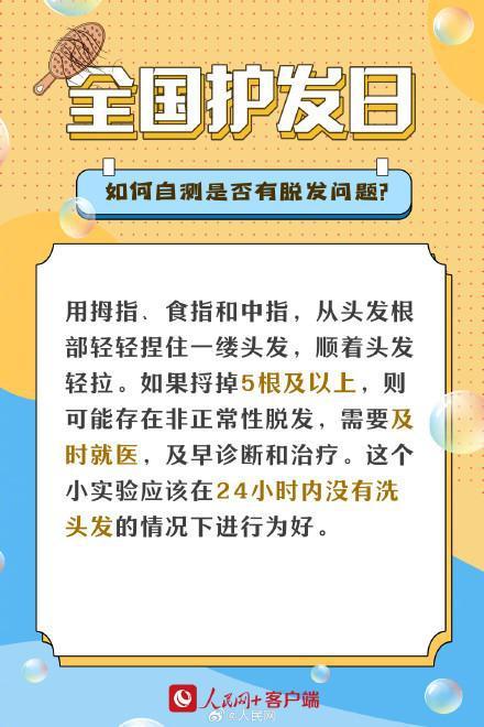 如何自测是否有脱发问题?可以天天洗头吗?哪些生活习惯会影响头发生长?8月18日是全国护发日,一起了解如何科学护发。(人民网微博)
