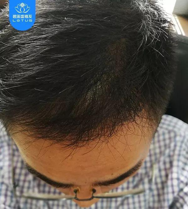 程先生家族本身就有脱发遗传,据程先生回忆:从自己感觉掉发量加大,到现如今的脱发状态,只有一年不到的时间。