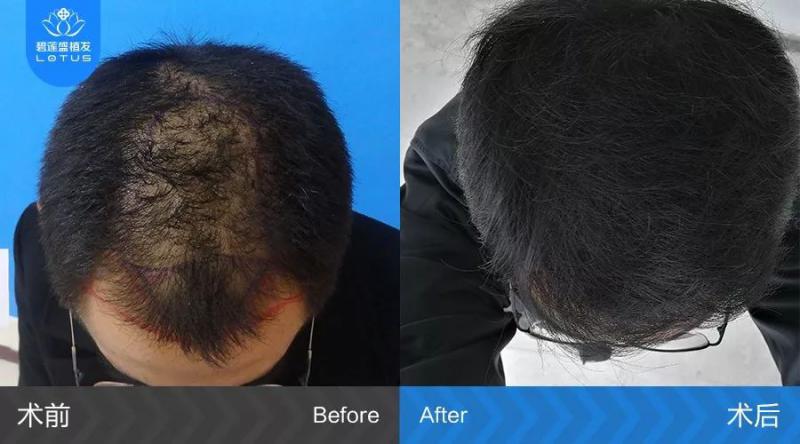 术后9个月的时间,放一张和植发前角度相同的照片。不同的是当初头顶大面积稀疏的程先生,此时已经是一头乌发。当初只是从后面看不出脱发问题,而现在的他是从各个方位来看都没问题!