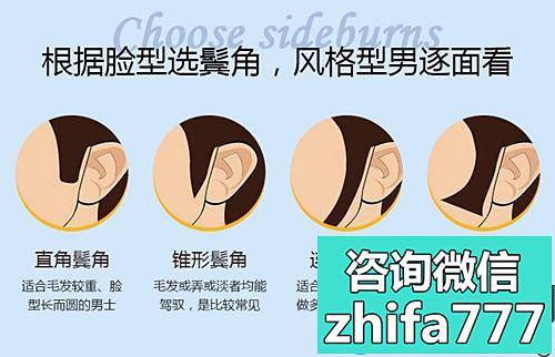 看了种植鬓角类型的几款图片后,我心里打算做直角鬓角,因为,看资料上说,它适合毛发中、脸型长而圆的男士,我感觉正好符合自身。
