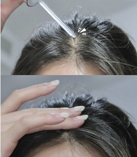 我主要是滴在脱发严重的地方,冰凉的很舒服,而且味道也很自然,滴完后按摩一分钟以上就吸收掉了,一点都不油腻。早上出门我经常是扎完丸子头再滴一下,不会弄到发型真的太方便了。