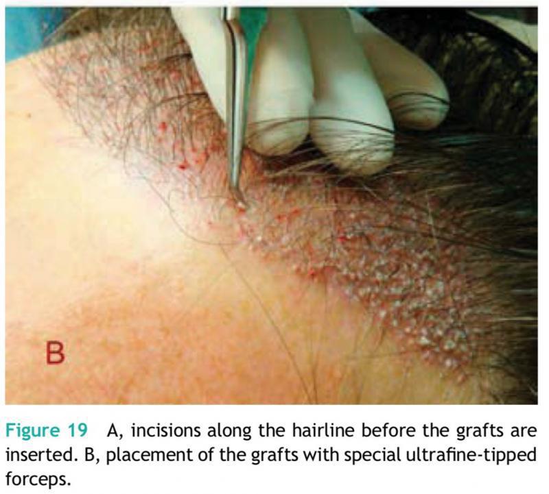 将毛发植入落发区域Photo Credit:Follicular Unit Hair Transplantation: Current Technique, Actas Dermosi liogr. 2010;101(4):291–306