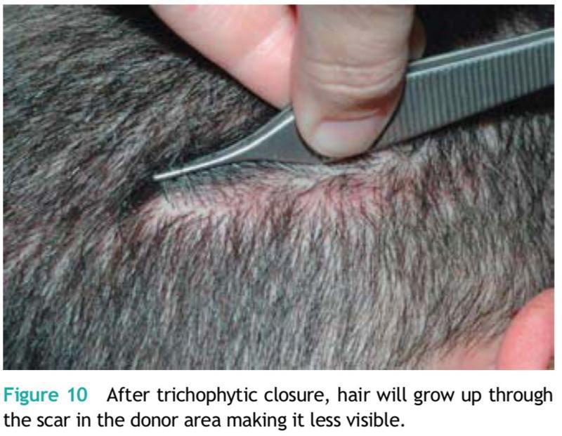 FUT手术后留下的淡红色疤痕Photo Credit:Follicular Unit Hair Transplantation: Current Technique, Actas Dermosi liogr. 2010;101(4):291–306