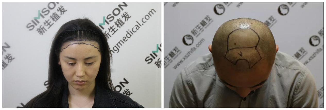 因为自己实在不想后面也秃了,所以选择了不剃发植发,3年前能做不剃发植发的机构太少了,找了很久才找到,我选择的是不剃发短发植发,长发植发太贵了,还是舍不得,下图就是我不剃发植发设计的发际线。