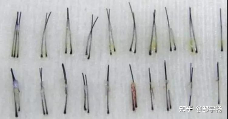 两种方法各有其优缺点。FUT是通过利用工具宝石刀切取后脑勺一条长而窄的头皮组织,在显微镜下分离出毛囊单位。这一方式的优点在于,可以提供更多的毛囊单位,对于大面积脱发人士来说更加适用。缺点则是,术后患者的后脑勺上会留下一条线性瘢痕 ,美观程度会大打折扣。