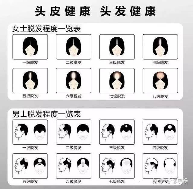 医学界将脱发的等级根据脱发部位、形状和轻重程度分为以下几级: