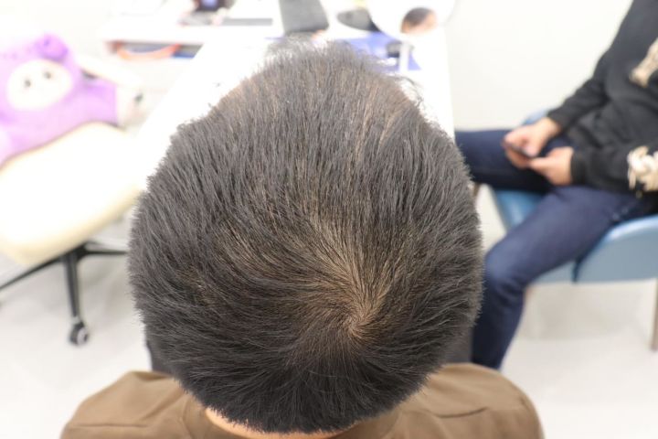 不仅如此,两额角脱发也比较严重,由于脱发的时间比较长,也没有及时的进行治疗,现在毛囊已萎缩坏死闭合掉,只能通过植发手术来改善这一问题。
