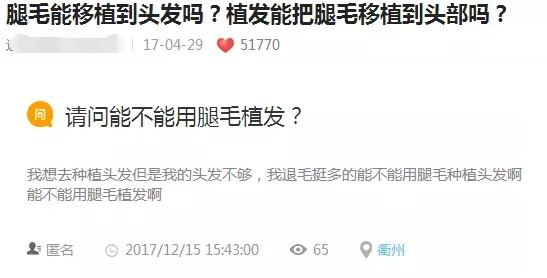 大部分这么想的人无非都是觉得自己头发不够,想“废物利用”下腿毛。毕竟在整形领域里不也有将肚子上、大腿上嫌弃的多余脂肪移植到胸部、脸部做贡献的做法嘛。