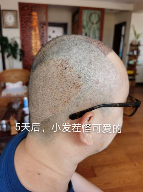 4。术后因为有麻药和肿胀液,所以最好卧床休息一天,但是可以移动办公,之后就是正常上班了,五天后去洗头时医生看了眼说种的很成功,我们悬着的心才放了下来。他去公司后不少同事跑来打听和询价,我跟他说你可得争口气把头发养养好,做一个漂亮的成功案例,我老公思忖片刻弱弱地说:「可以给我脸上打点马赛克吗?」