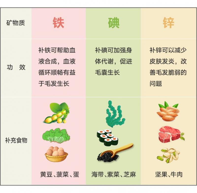 二、促进毛囊扎根生长:多食富含铁、碘、锌矿物质的食物