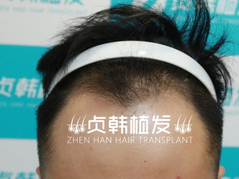 △冯先生不只是种植了双侧额角,还下移了一点发际线 加密了发际线中间偏上部位