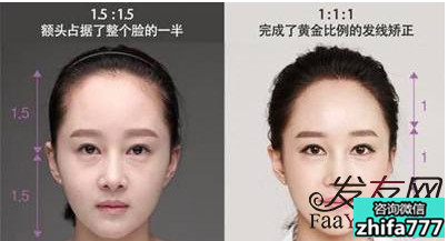 对于天生发际线偏高的女性,前额会显得很宽,导致脸型不够柔和。通过植发手术对过高的发际线进行调整之后,前额不会那么宽那么高,脸型看起来也会更加温和。