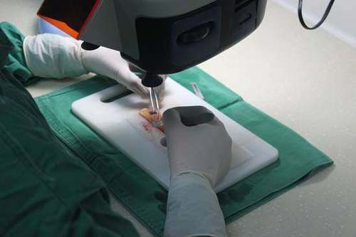 在一旁的护士美眉快、准的分离提取出来的毛囊