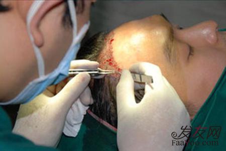 采用头皮缩减植发手术,主要采用在头发缺失的地方切除一部分头皮,采用拉伸的方式进行缝合,以此达到减少脱发面积的目的。这种植发技术的缝合多采用“U型”和“S型”切口,这样的切口更利于缝合,降低在缝合拉伸头皮过程中的损伤。