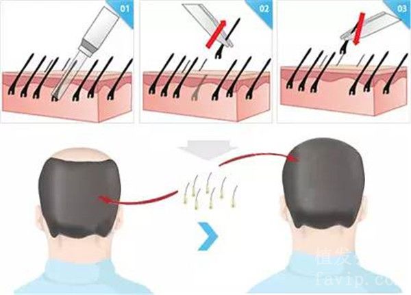 那么整个脱发区损伤的程度在手术的操作包括无形的毛囊受损,因为口径很小,所以对于头皮的损伤也减少了,从而减少整个白色点的产生。