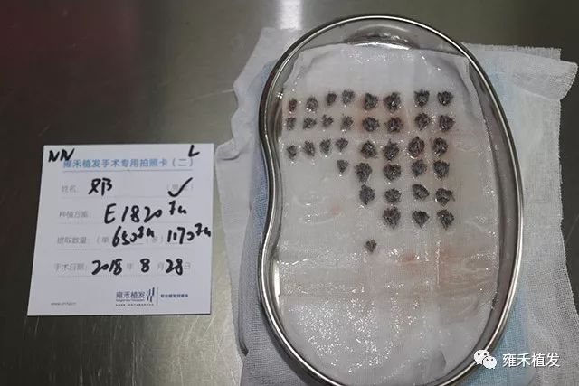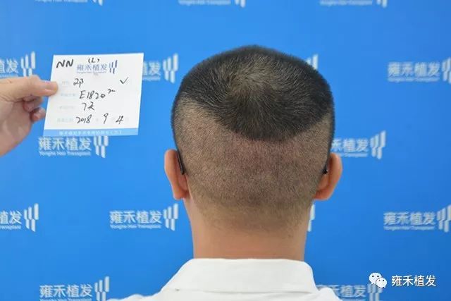 2018年8月28日,南宁雍禾采用FUE为小邓种植1820单位,其中单根头发的毛囊单位650,多根头发的毛囊单位1170,本来术前预估种植1800,结果多取种20单位。就种植量来说,这是较小面积植发,但相对于他的较小年龄来说,又是较大的种植量了。植发是在局麻状态下无痛的,术后不留疤痕的,像他这样的种植量也就三四小时。