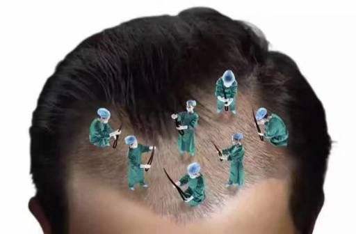 三是毛囊种植,根据植发设计方案艺术性的种植在所需区域;