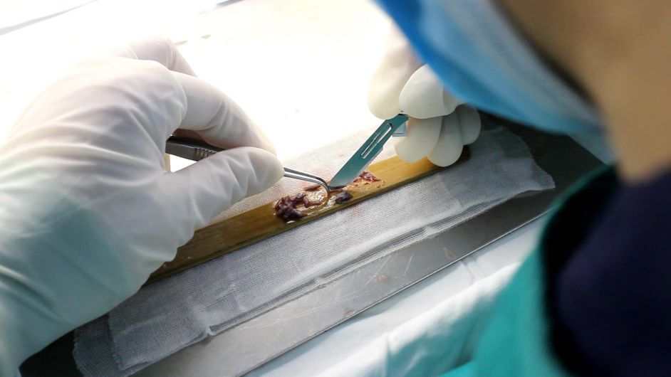 由医生提取完毛囊后,会将毛囊交给毛囊分离师,由分离师将毛囊单位分离成株,一般是1-3根为一株,然后再放入营养液进行培育。这一步对毛囊存活率也相当重要,需要十分细心以防切到毛囊。