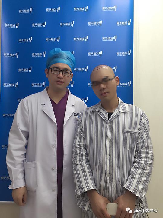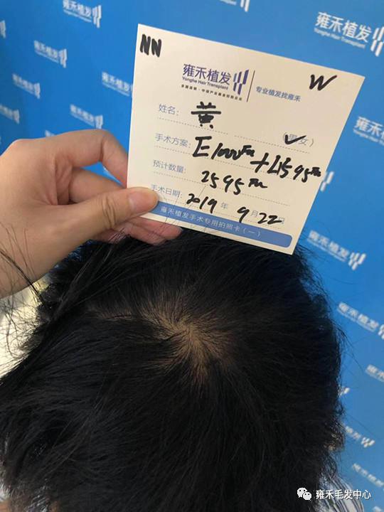 黄先生也就30岁吧,整个头顶秃了,一开始压力非常大,主要是没对象,随便找了一个小植发医院种头发,以为一般医院都能植发,结果手术失败。他第一次来南宁雍禾,一口一个“植发选医院太重要了!”