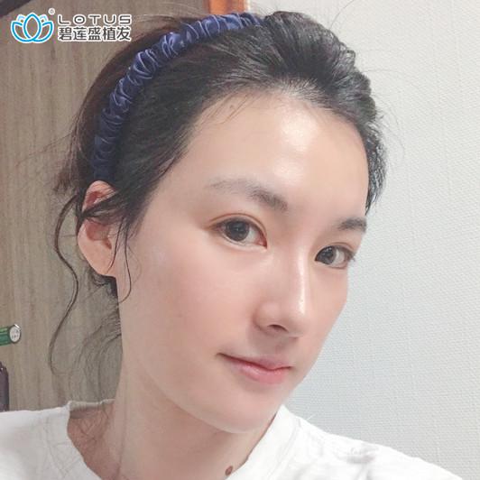 术后5个月放小姐姐一张素颜照,头发长了7-8cm,前额的头发越来越细,变得更自然,生长方向也是随着毛流方向。