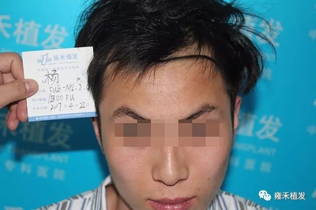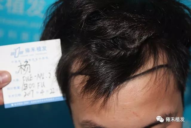 温州的小杨也就23岁,是90后中靠近00后的人了,按说很是年轻吧,但脱发早早从“头”开始。主要是发际线后退,特别是两额角后退较多,呈两个对称的小三角,看着挺扎眼的。说来他是一个帅哥,长得英俊,为了不让脱发拖累形象,就留长头发遮盖,大家看看文章后面的图片,术前的两张,前面的头发层层叠叠的,就是为了往前梳着遮盖后退的发际。