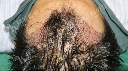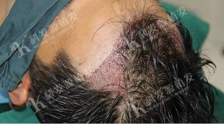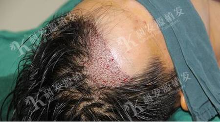 术中情况,毛囊分布排列十分自然美观,出血非常少,由于是在术中,所以血痂不能进行清理。