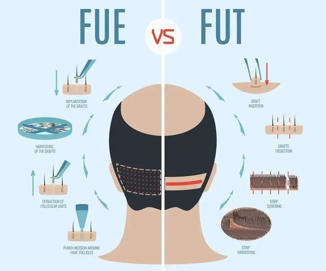 FUE创伤小,无须缝合,瘢痕较隐蔽,已经逐步取代FUT成为现在最常用的技术。