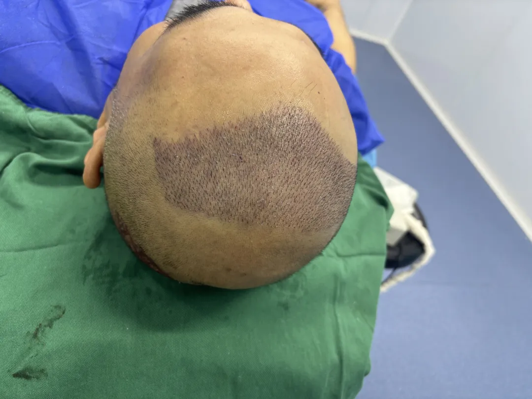 植发前需将后枕部提取毛囊的位置的头发剃光,以方便植发医生进行操作。