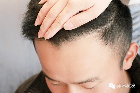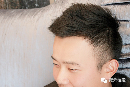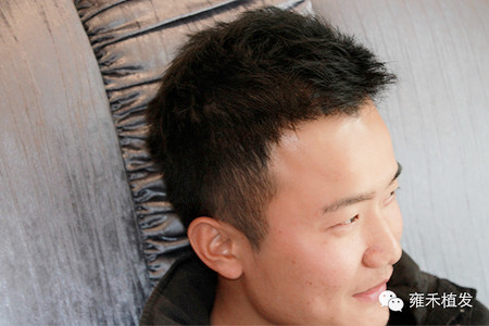 (来一张撩头发的特写镜头,让你看得更明白:哦,夏天植发好效果哟;哦,雍禾植发好效果哟!)