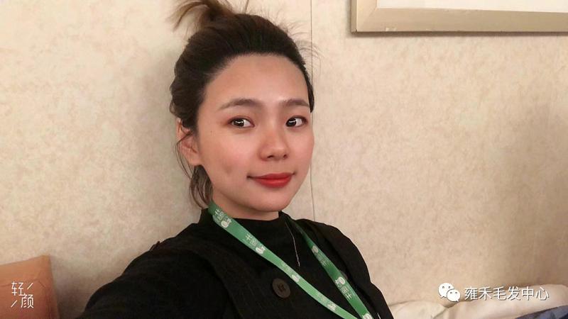 术后第二天起码休息一天吧?不是的,她第二天正常上班,说来植发是微创小手术,只要是非体力工作第二天上班没事的。说来女性更容易在术后掩饰植发痕迹,后枕长头发披散开来将取发区遮盖,前面长发往前一梳遮盖了种植区。