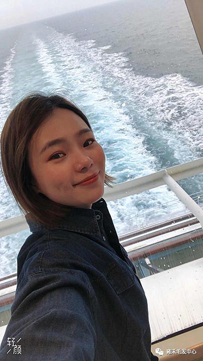 术后半年吧,种的头发渐渐浓密,发际前移,两个额角饱满,再往后额角更饱满,于是,她梳起了丸子头,这才是美的头。新头发与周边的头发完美融合,你不给别人说,他们还以为是天生的头发呢。有了好头发好形象,小王还坐游轮去日本,在甲板上被海风吹起头发,她给人一种飘逸的美。因为植发了,才不怕被海风吹起头发露出大额头。