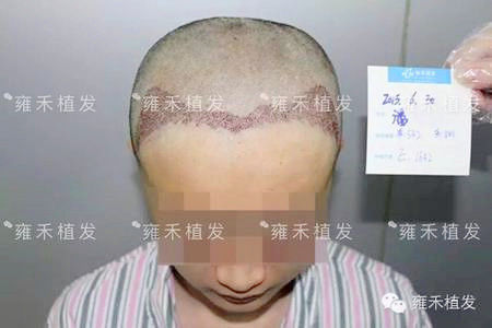(术后当天的种植区,种出一道曲线,期盼她的头发美直线般地升起!升起!)