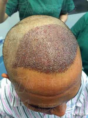 南宁雍禾采用FUE为韦先生种植3830单位,注意一个细节,种植区不是同一密度,而是又细分为三个小种区:前面两额角的密度是50,发际线正中往上的稀疏区密度是40,头旋前面的稀疏区密度是20,是一个逐渐递减的密度。不止南宁雍禾,就是雍禾植发的所有直营院植发均是无疼痛的,并且手术速度很快的。