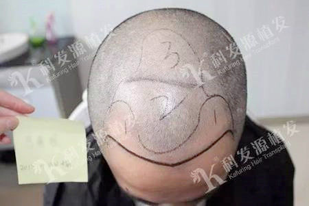 马先生来到杭州科发源,由王医生为其做了毛囊检测,确定他前额有简单的后退现象,并且头顶部位头发比较稀疏,另外,马先生为了让自己的形象更完美,并确定进行鬓角移植。结合马先生的实际情况,经“N 1”服务会诊后,确定植发方案为FUE PTT ZTC三种技术结合,共移植3191毛囊单位。其中FUE用于1区域的种植,PTT用于2、3区域的加密,ZTC用于鬓角移植。