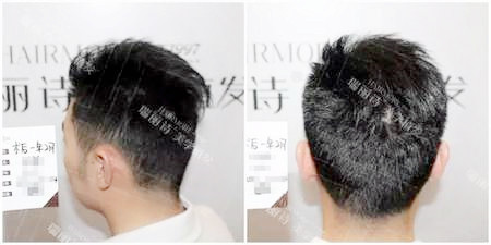 再来看下两个额角,近距离更完美!种植的头发恢复非常好,原本光裸头皮的地方,现在已经被浓密的头发所覆盖。最后看下后枕部,你能看出取发痕迹吗?依旧茂密!