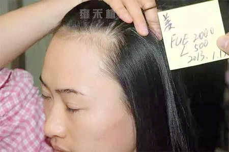 一般人的想象中,个别女性植发缘于形象不佳才来改善的,真正的美女是不会植发的,但你想错了,真正的美女也爱植发,只想让形象锦上添花。姜女士梳上刘海,你是根本挑不出来头发有什么瑕疵的。把头发撩起往后梳——她依然是个美女,不过,她又觉得额头过大,需要将发际线下移。爱美的人更是挑剔自己,总想着让美丽一分分地往上提升,爱美的心愿是无止境的。恰恰是这种审美,姜女士有了植发的需求——下移发际线只能植发,舍此无它法。