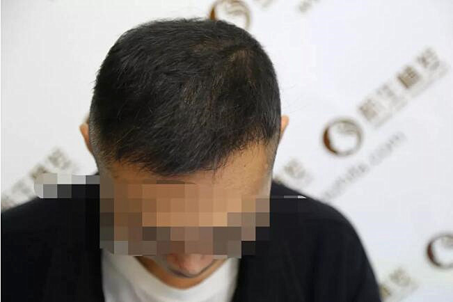 术前:前额脱发严重并延伸至头顶,头皮清晰可见,实际25岁的他,看上去还以为已经三四十岁呢!