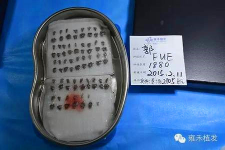 小郭在沈阳雍禾采用FUE LATTICE种植2105单位,本来术前预计种植1880单位,结果是多取种225单位。其中的LATTICE就是在稀疏区加密的。我们介绍过一个上海雍禾的案例,种植2015单位为岁月刻一个吉祥数,而小郭种植2105单位,也是近似合拍的吉祥数。